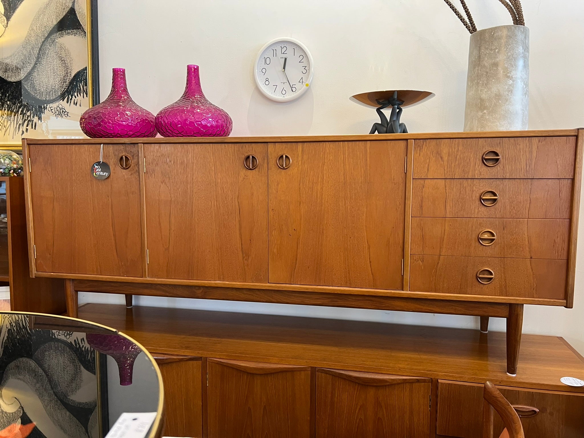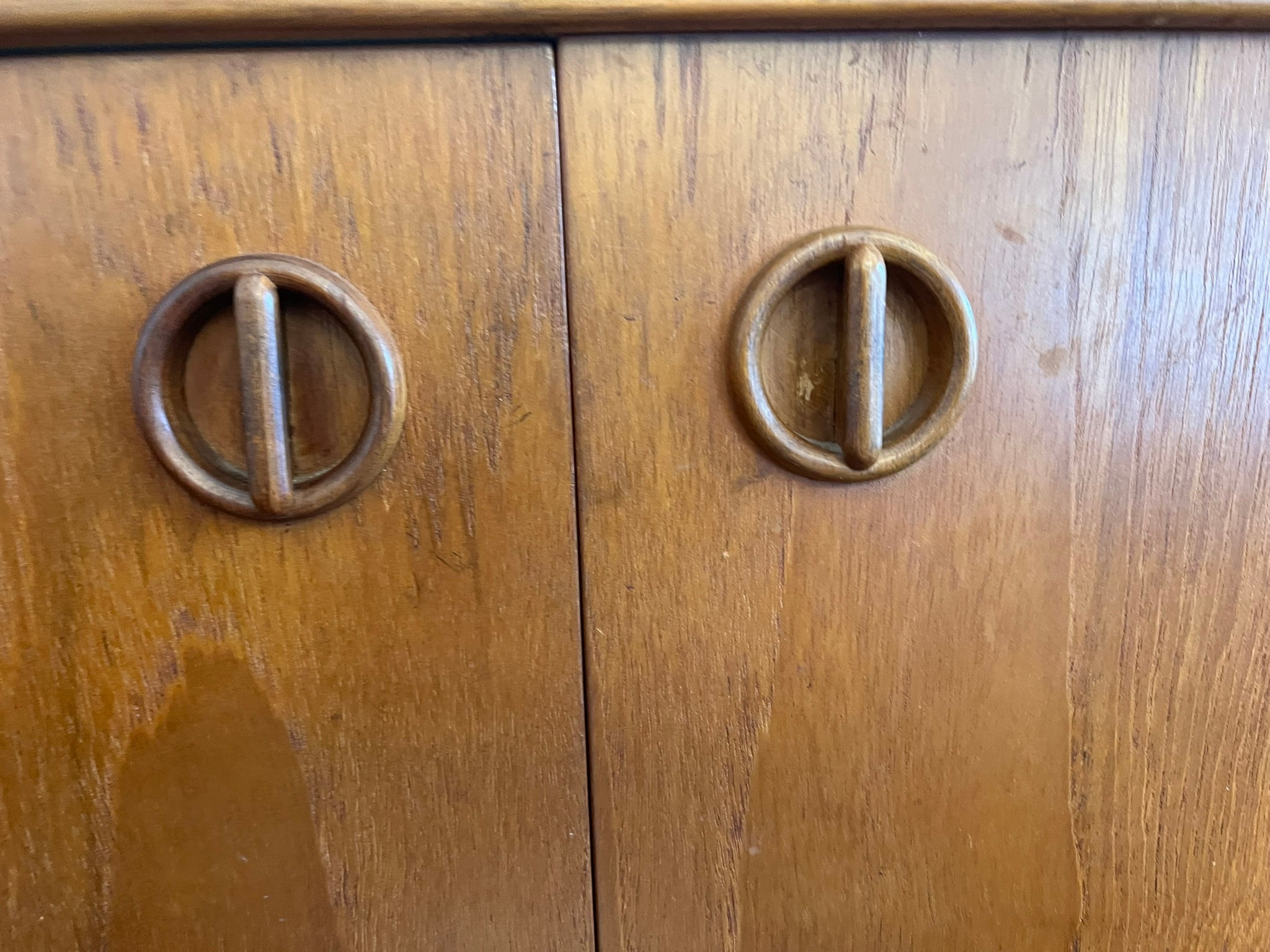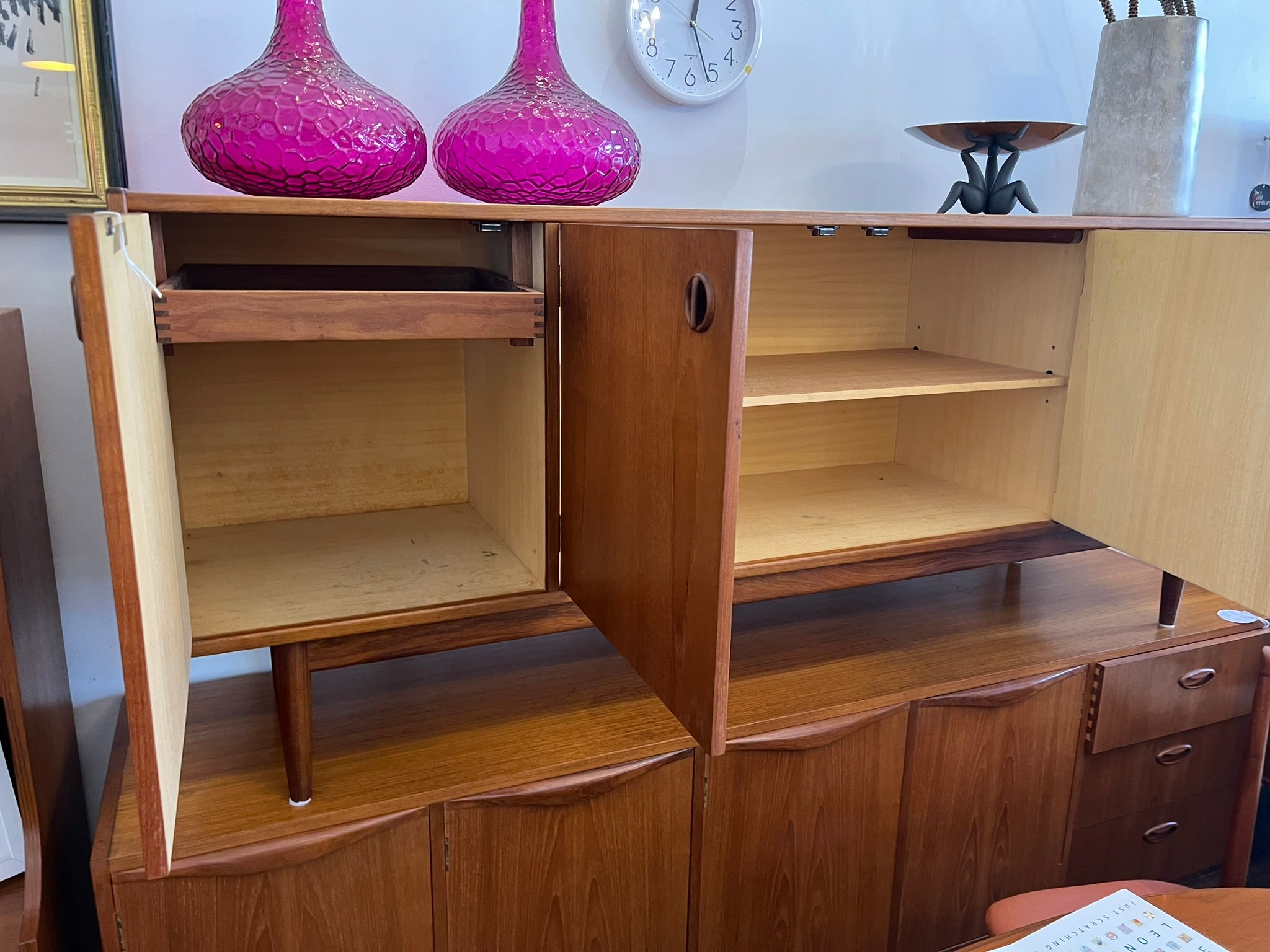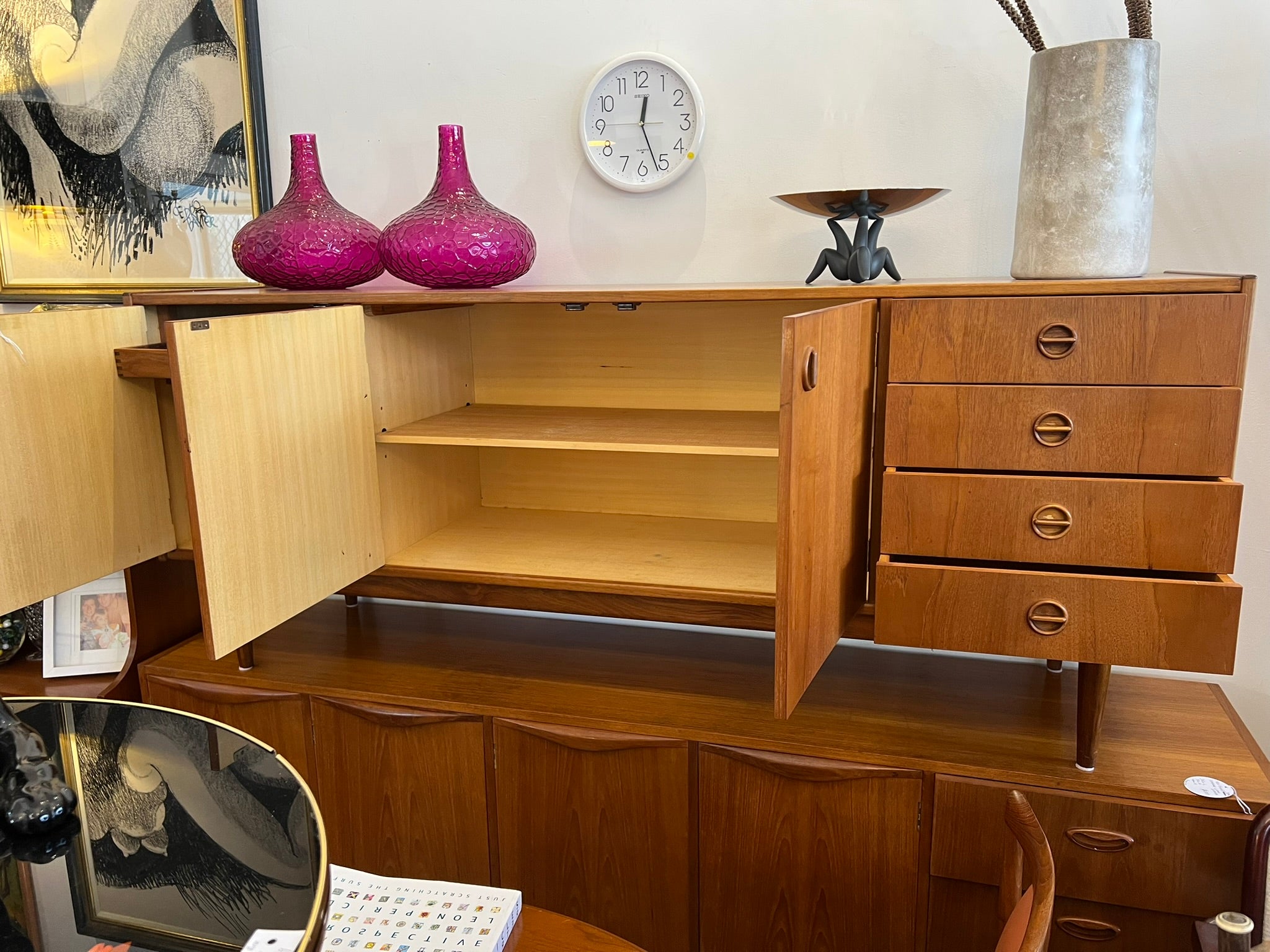Description: 1960s, Australian made teak sideboard by Parker with three doors and four drawers,