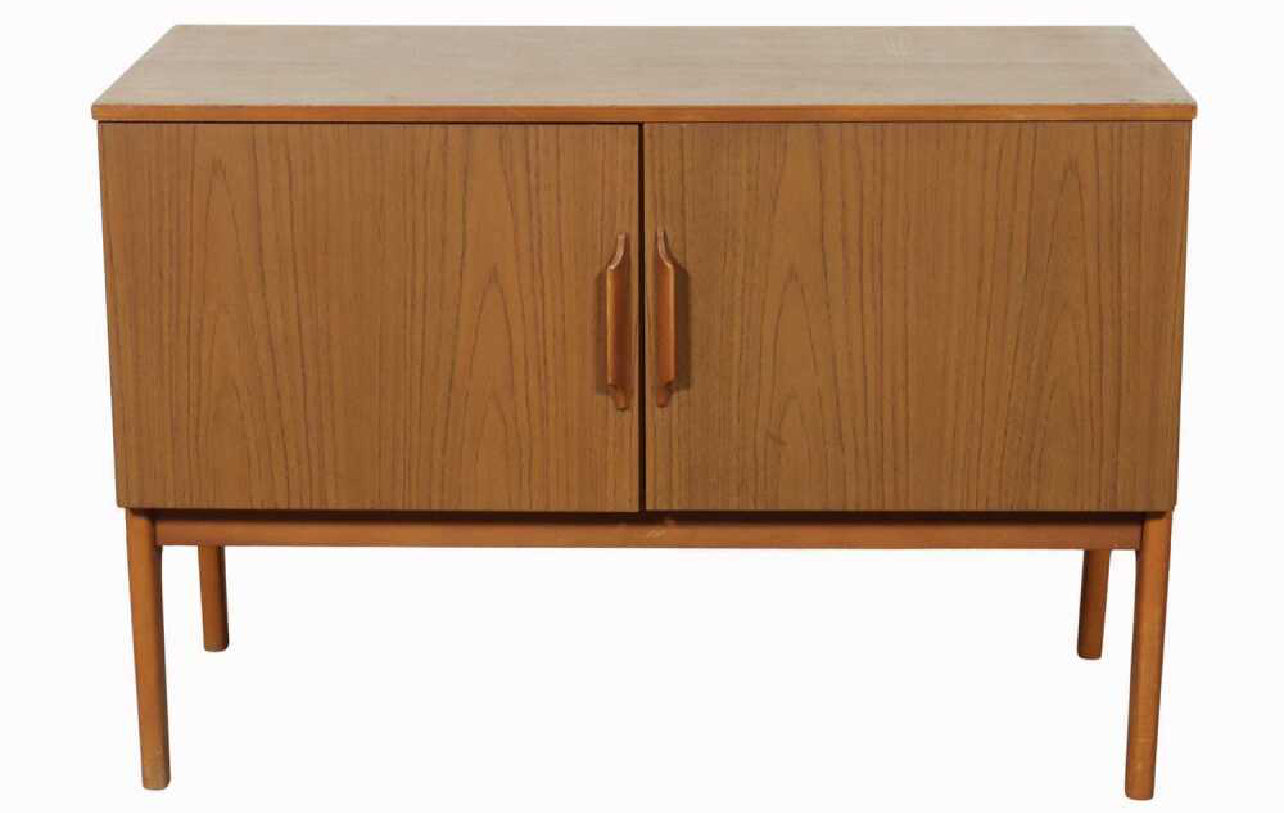 Description: Australian made teak veneer two door cabinet with wave handles.