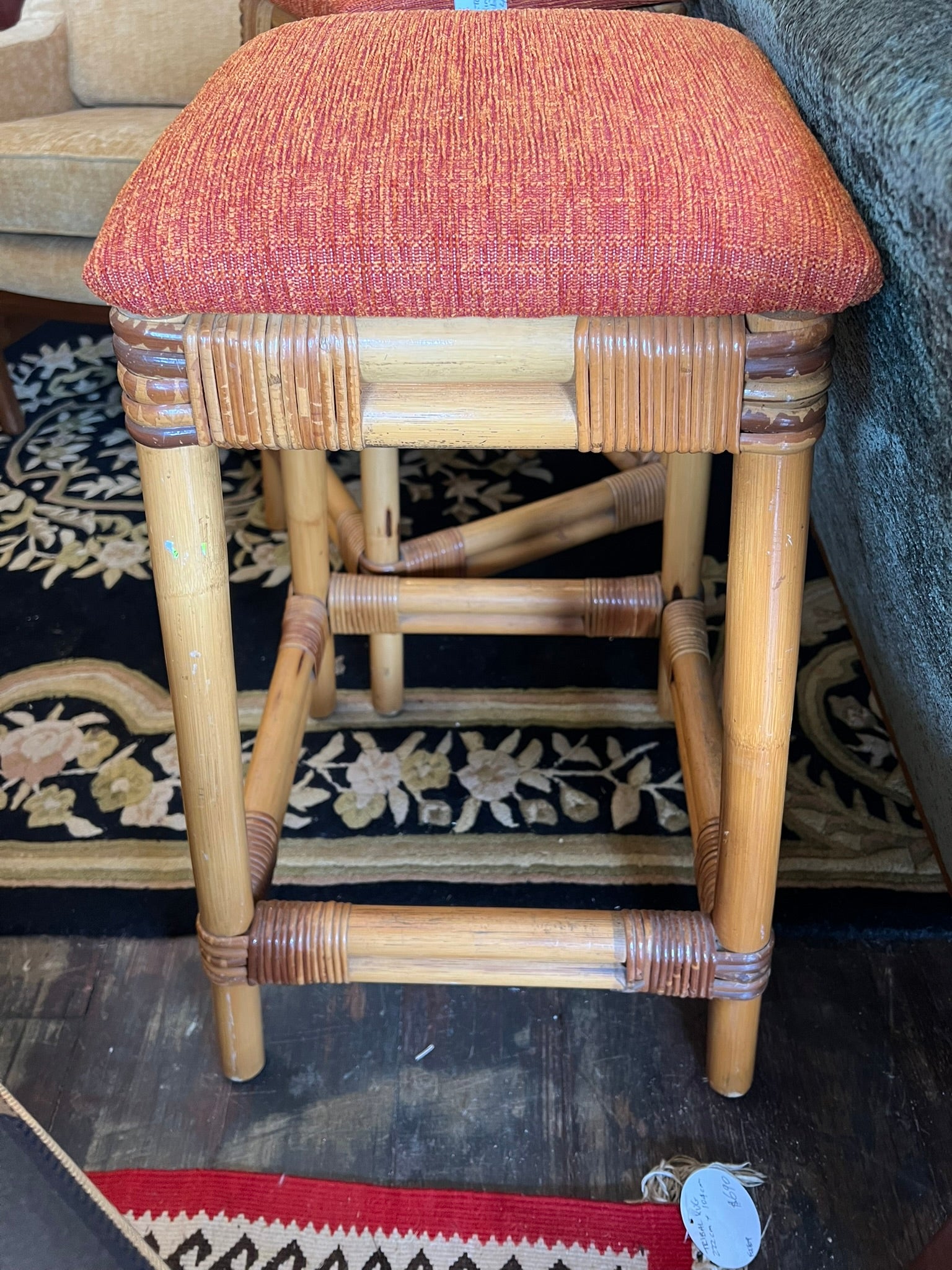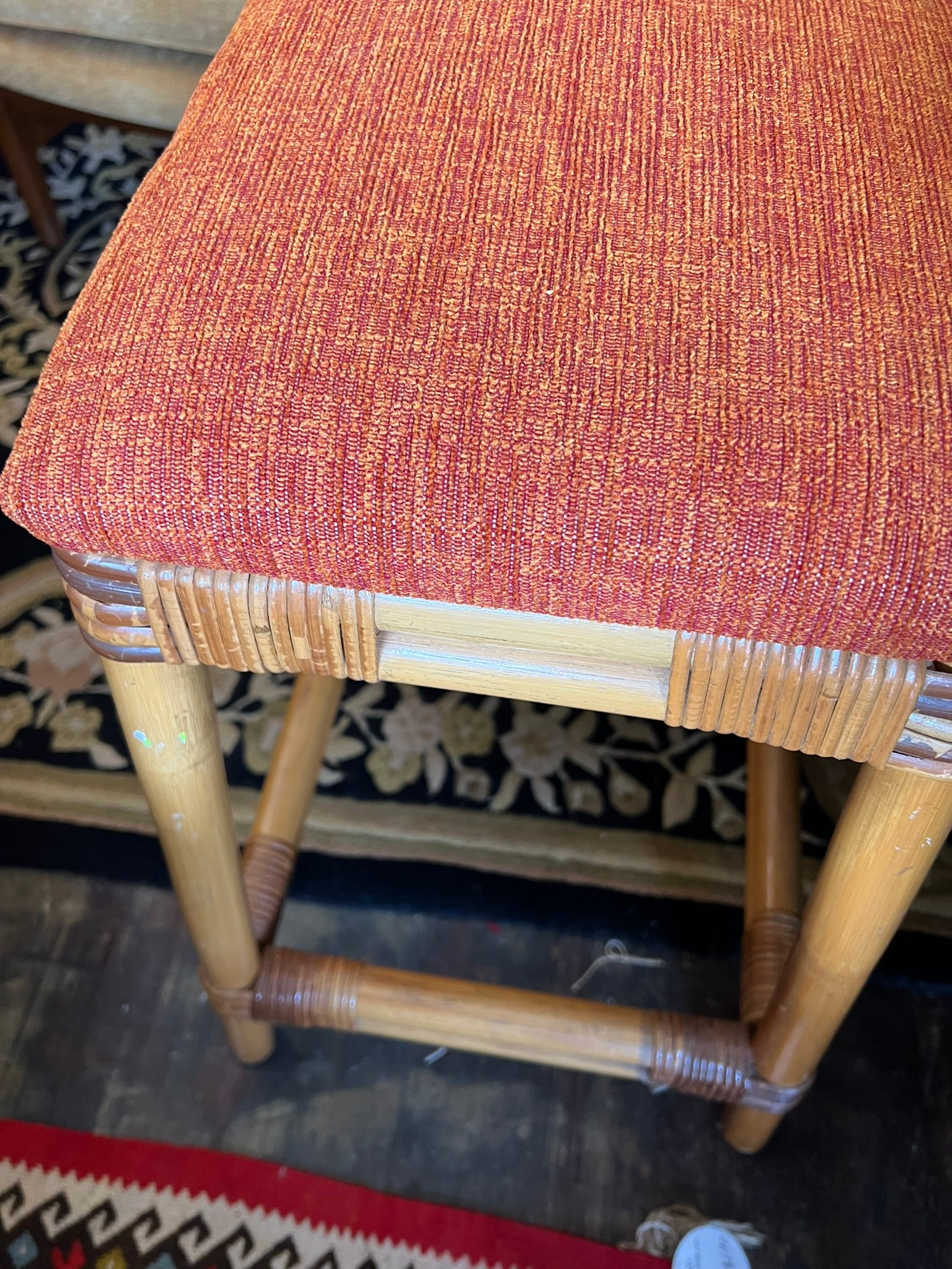 Four cane and orange fabric seat stools